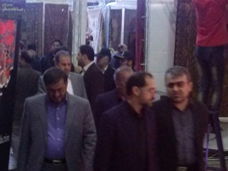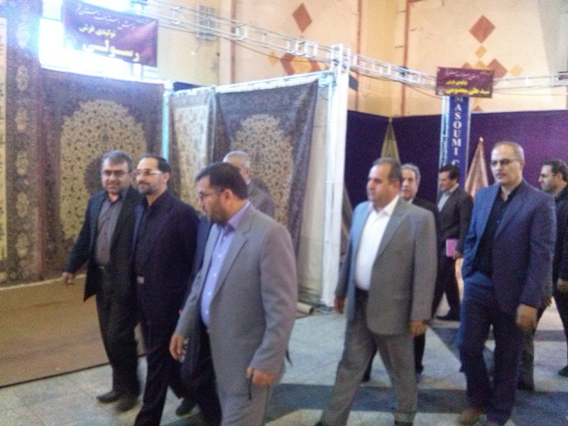 بازدید مهندس فیض اللهی از غرفه خانه هنرمندان قالیباف یزد در نمایشگاه سراسری فرش قم
