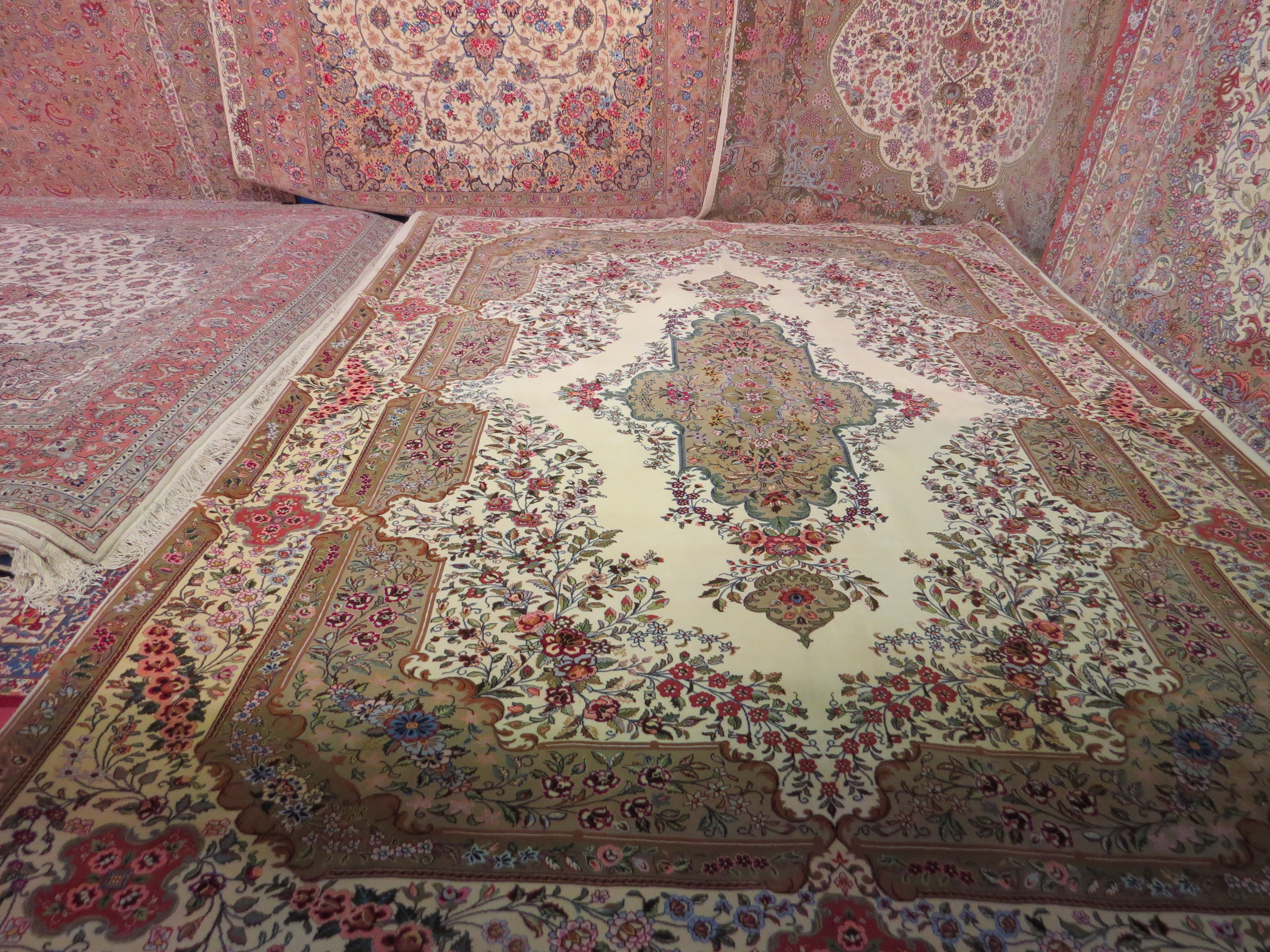 فرش ابریشم اصل قم کرک و گل ابریشم با چله ابریشم (برند قمات)